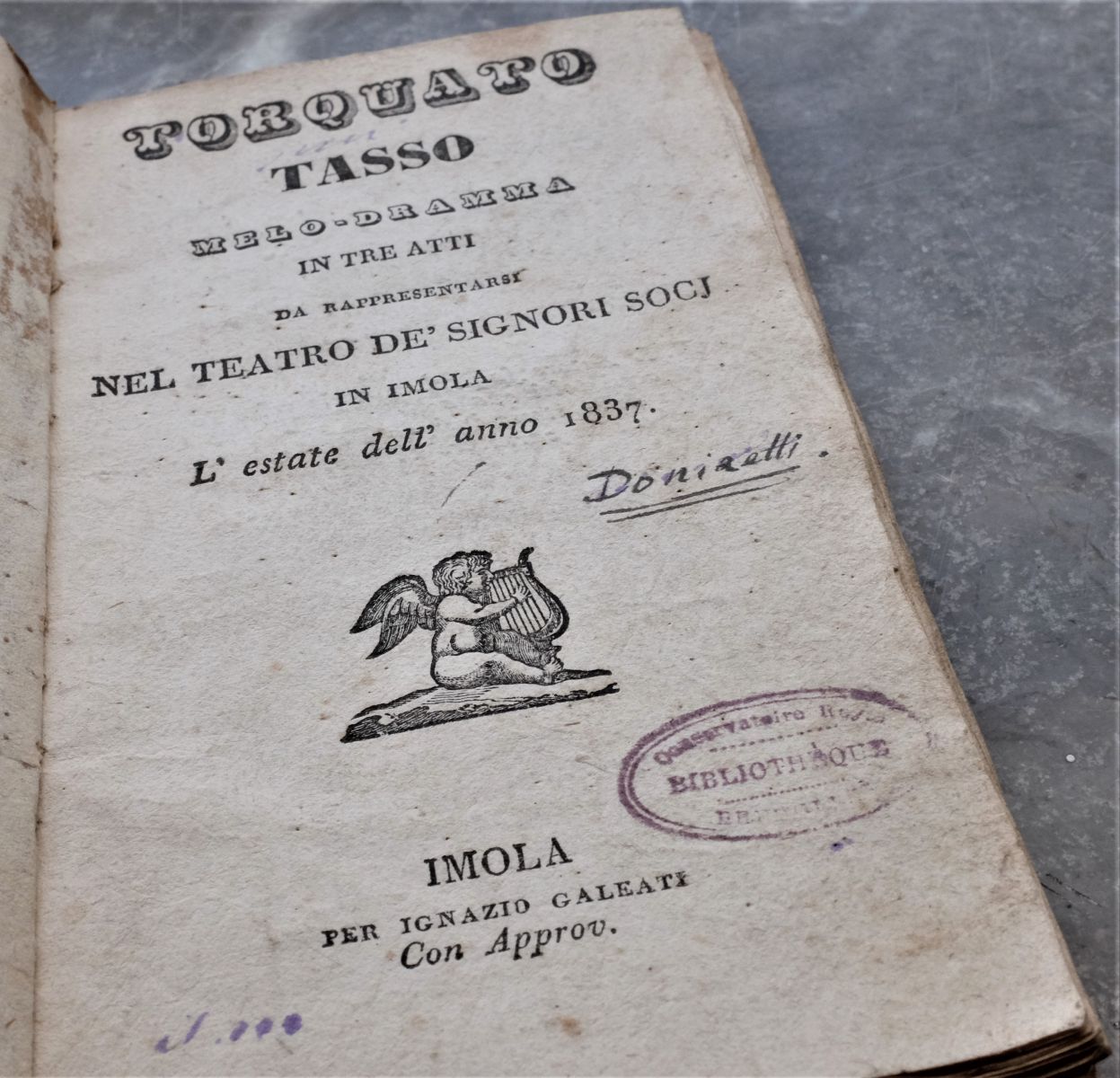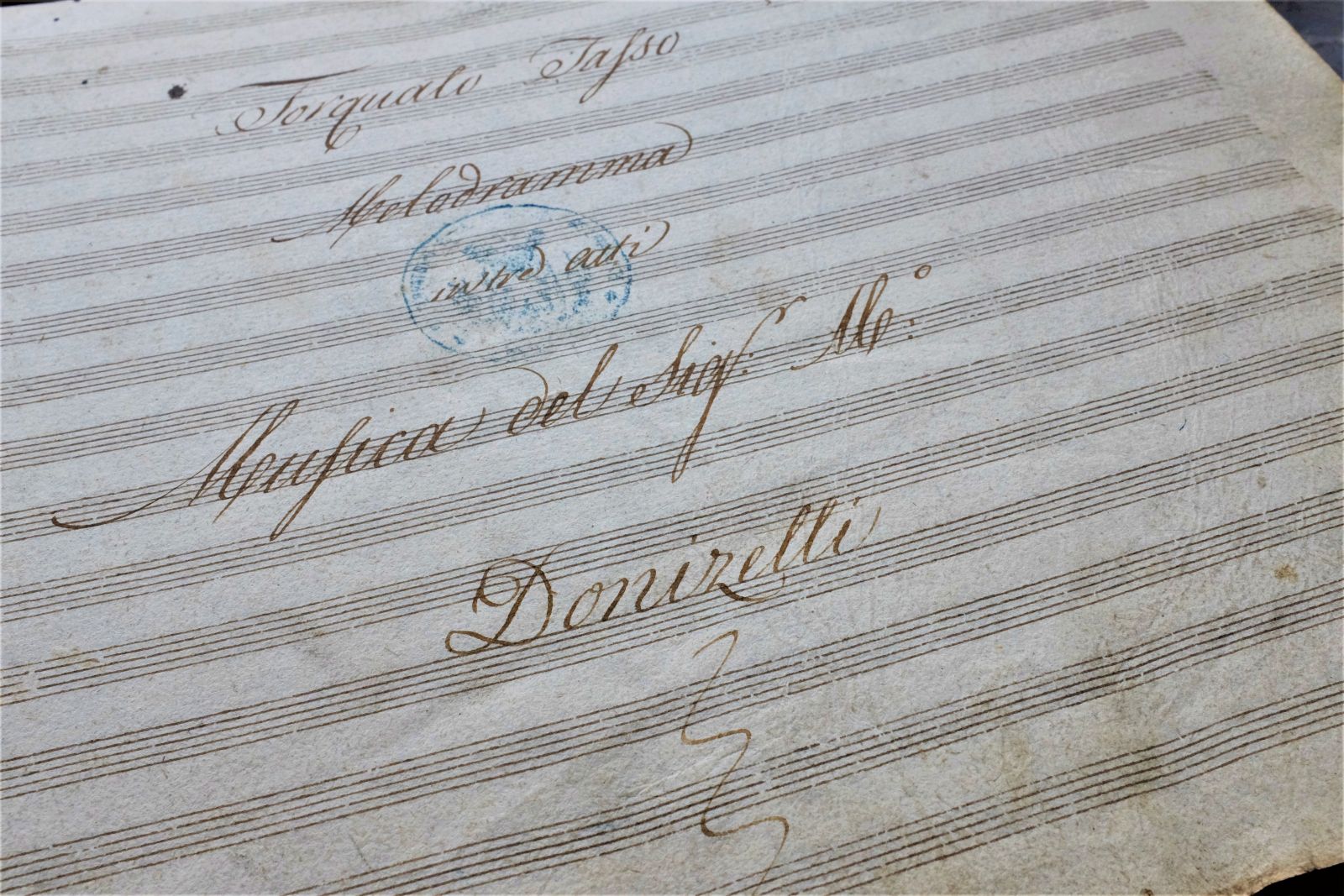In de bibliotheek bewaren we meerdere opera's van Donizetti. Het manuscript van Torquato Tasso bestaat uit twee volumes met redelijk wat correcties, notities en hier en de toevoeging van enkele gedrukte pagina's. Deze opera werd voor het eerst opgevoerd in Rome in 1833. De tekst is van Jacopo Ferretti (1784-1852).