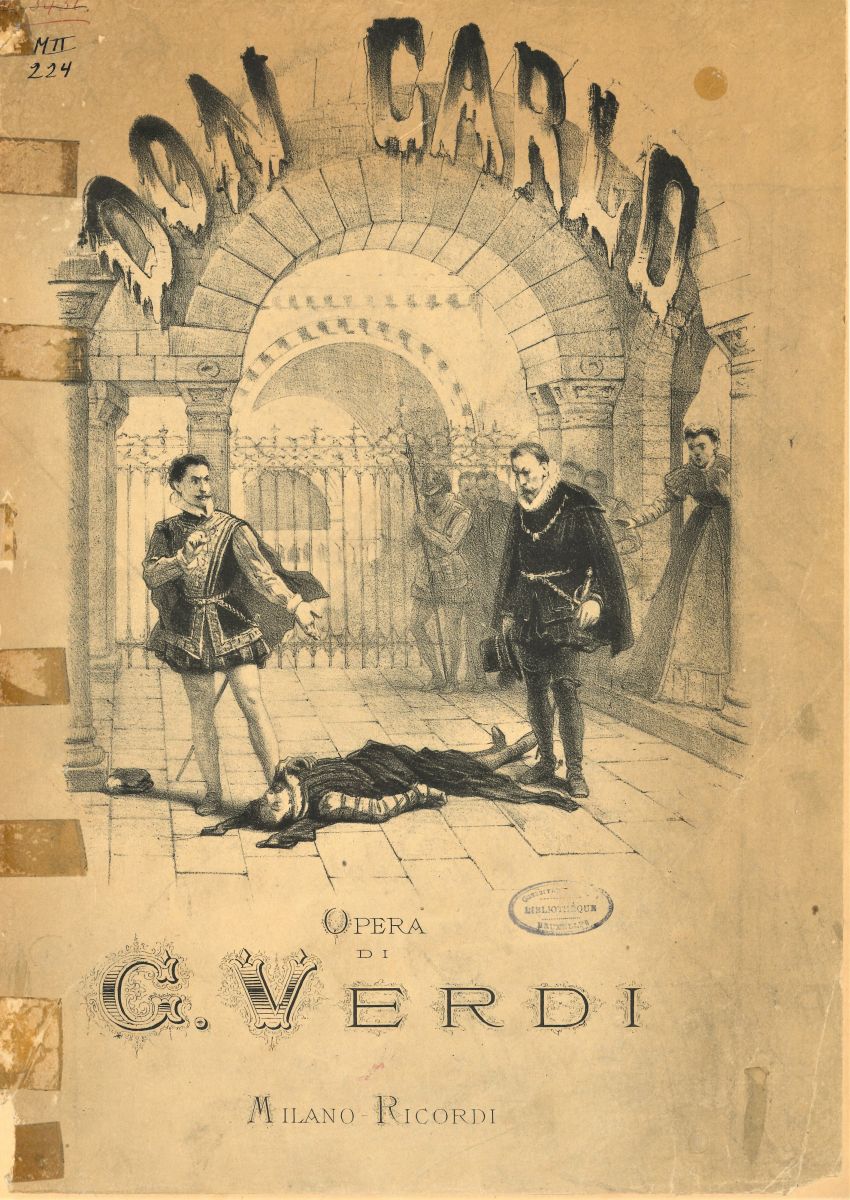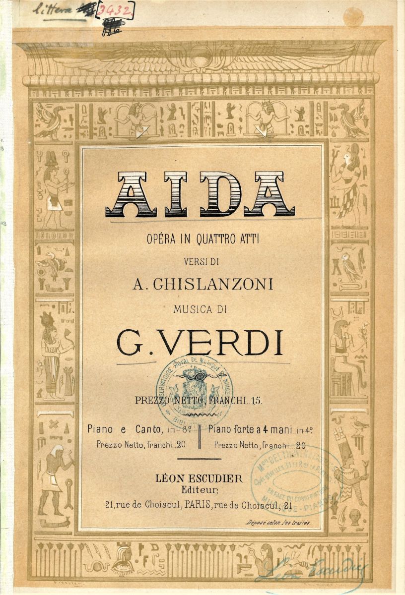 Titelpagina's van Don Carlo en Aïda, twee van de vele klavierreducties van Verdi's opera's die in ons bib bewaard worden.