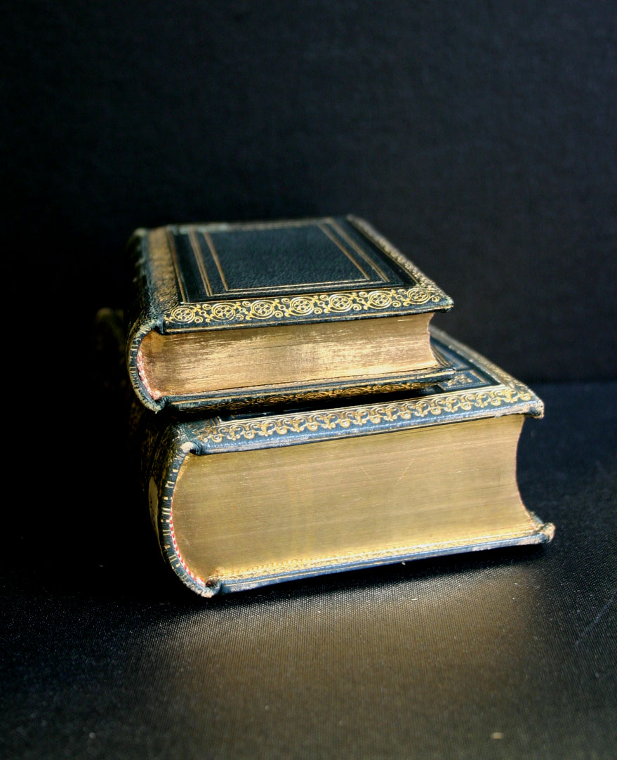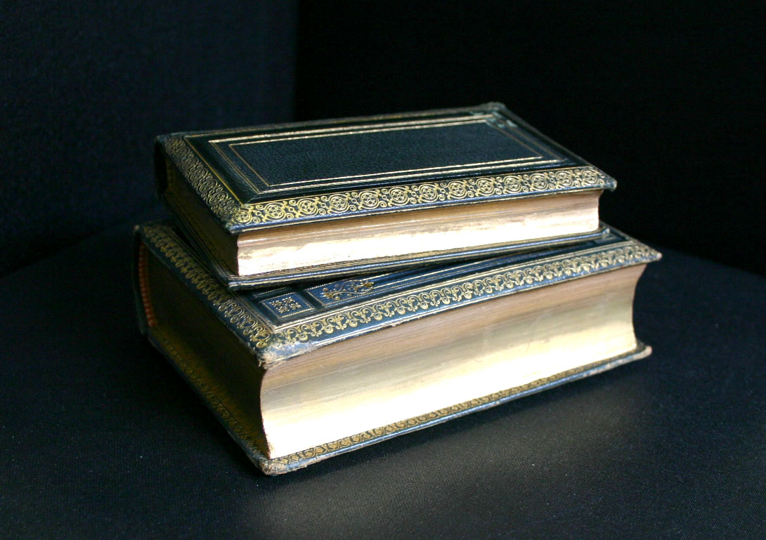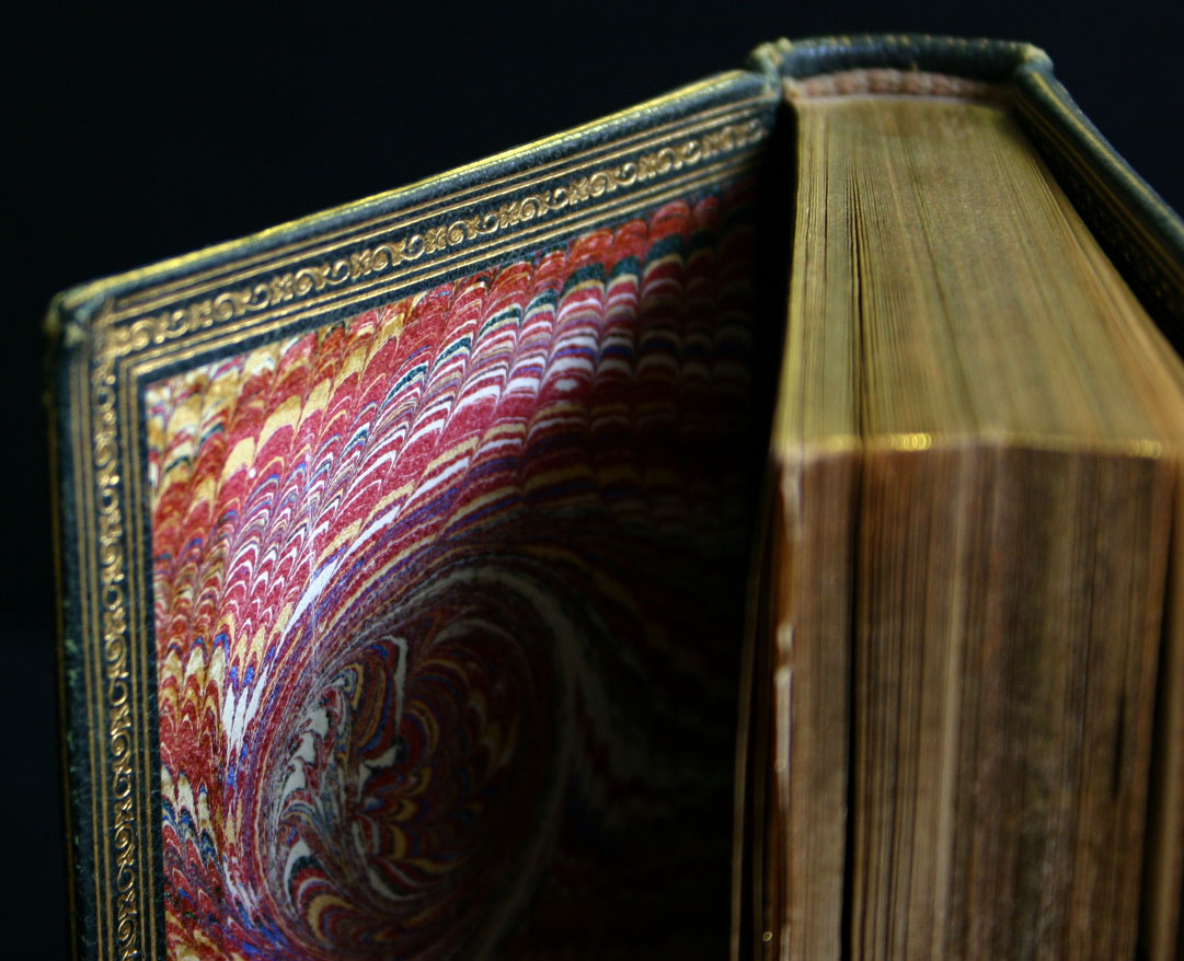 De boekbanden zijn gemaakt in opdracht van de toenmalige eigenaar Guido Wagener, dateren uit de tweede helft van de 19e eeuw. De vergulde sneden hebben na 150 jaar nog niets van hun glans verloren. De platten zijn aan de binnenzijde bekleed met marmerpapier, afgewerkt met een vergulde fries.