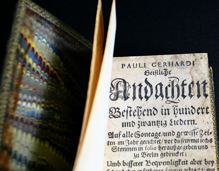 De Geistliche Andachten van Paul Gerhard "bestaan uit honderdtwintig liederen", aldus de titelpagina. De muzieknotatie is eenstemmig. De bundel telt niet minder dan 723 pagina’s, maar het boekje zelf is niet groter dan 15 cm.