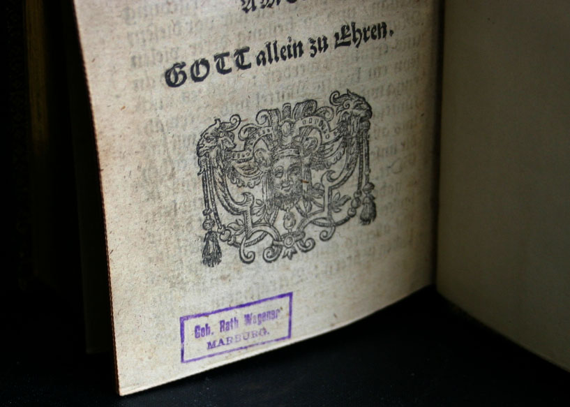 Het boek eindigt met een toen voor de hand liggende slotformule, zeker voor religieuze muziek: "Gott allein zu ehren". De stempel in blauwe inkt is het bezitskenmerk van de voormalige eigenaar, Guido Wagener.