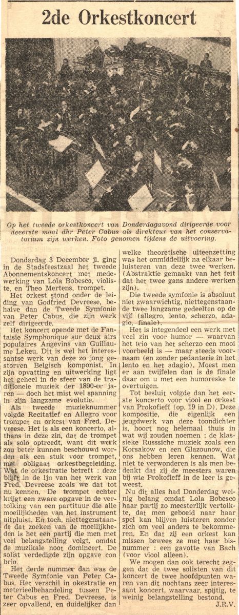 Cabus als dirigent, in de linkerhoek Bibliografie Webliografie Discografie: orkest Discografie: kamermuziek Discografie: solowerken Discografie: vocale muziek Cabus aan het orgel, St-Katelijnekerk Mechelen, ca. 1945 Portret van Peter Cabus